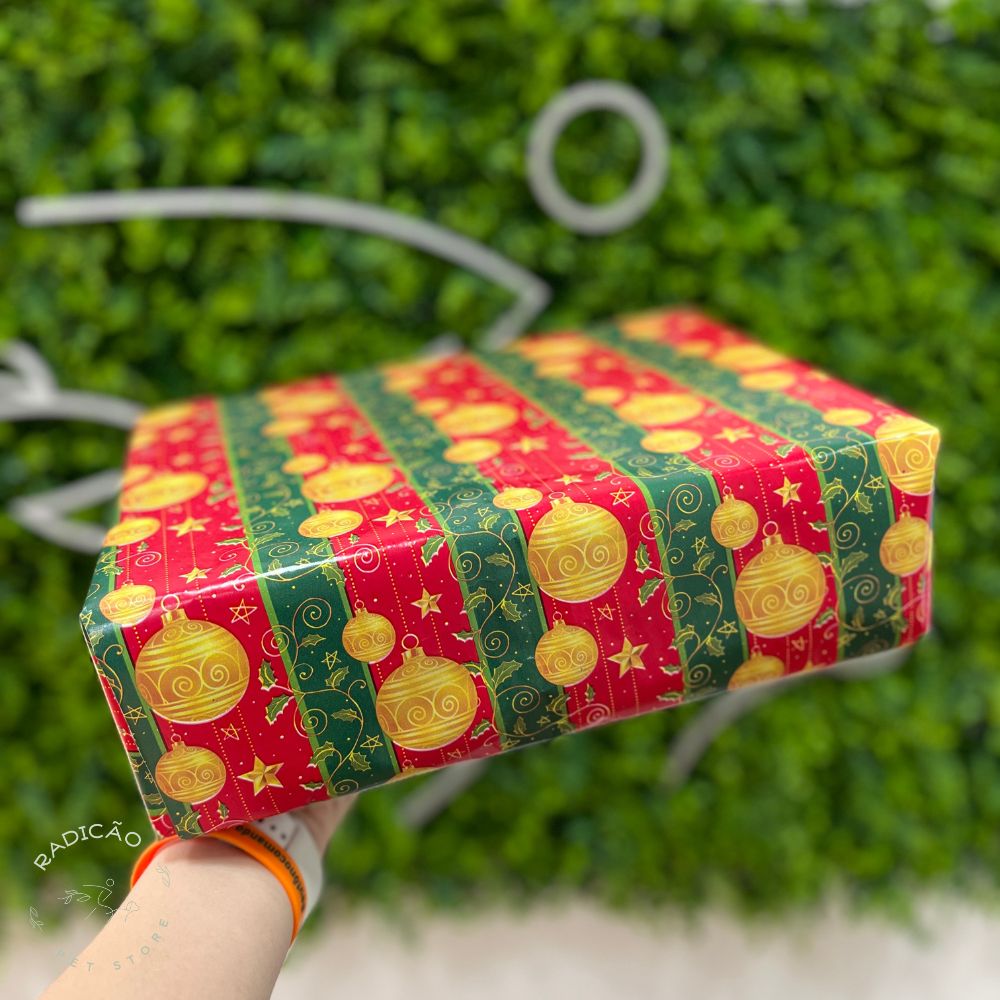 Caixa embrulhada em papel natalino para deixar tudo ainda mais lindo!