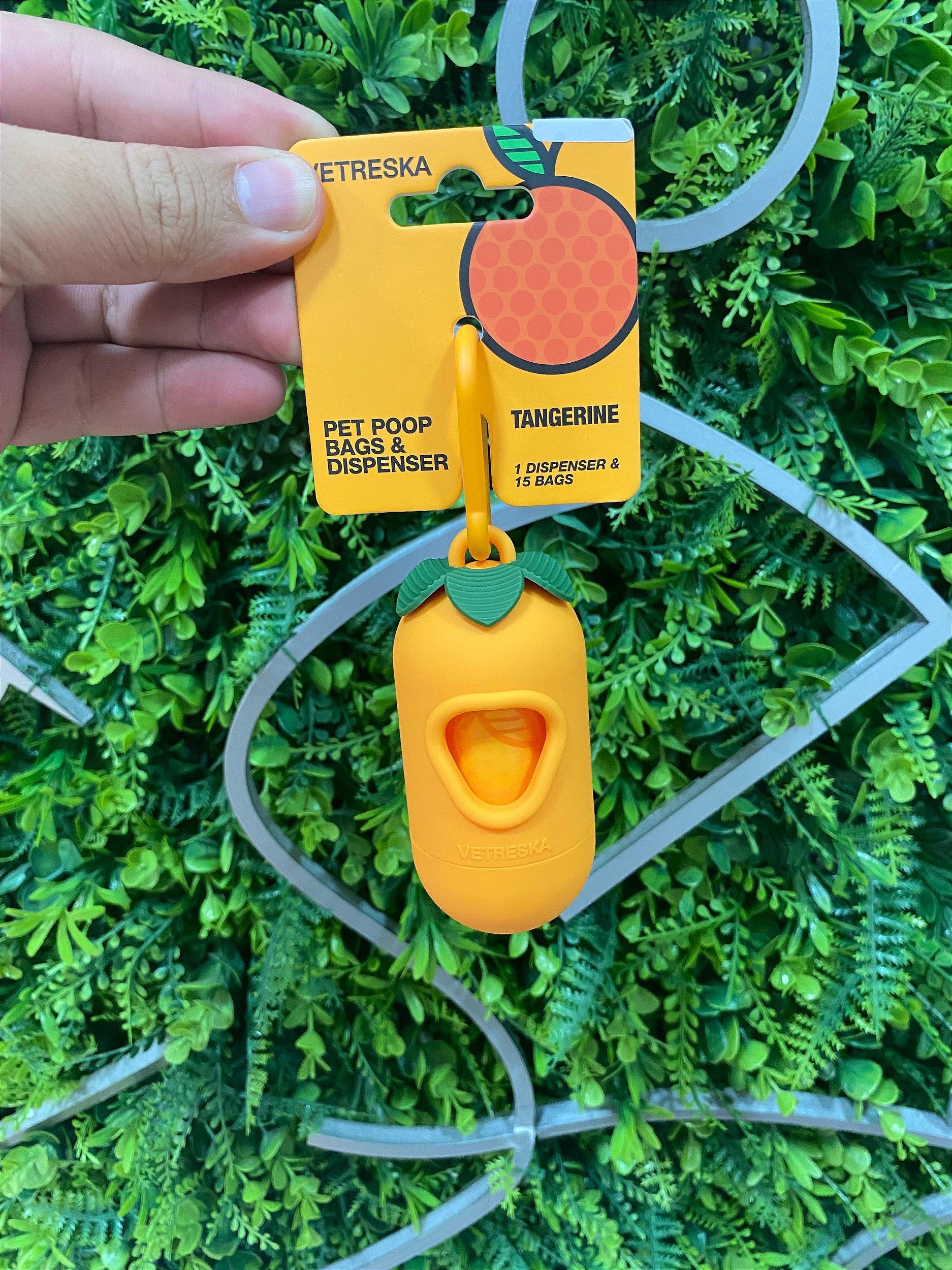 Este conjunto encantador inclui um dispensador adoravelmente projetado, em forma de tangerina fresca, e 1 rolo de sacos de cocô biodegradáveis.