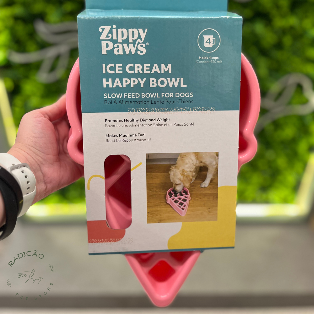 Torne a hora das refeições divertida com a tigela de alimentação lenta ZippyPaws Happy Bowl Ice Cream! O design elevado permite que seu cão coma até 10 vezes mais devagar, ajudando a prevenir inchaço, arrotos e engasgos – promovendo uma dieta e peso saudáveis. Base antiderrapante para evitar deslizamentos. Comporta 4 xícaras.