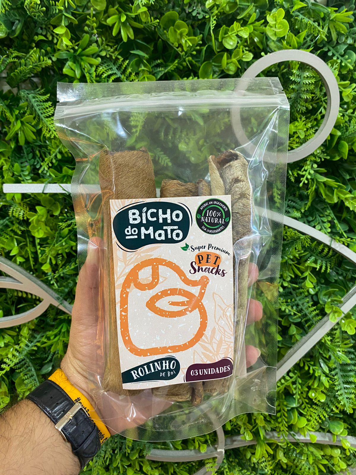 Contém 3 unidades de rolinho de pele bovina 100% natural. São fabricados artesanalmente e não possuem adição de conservantes, aditivos e corantes.